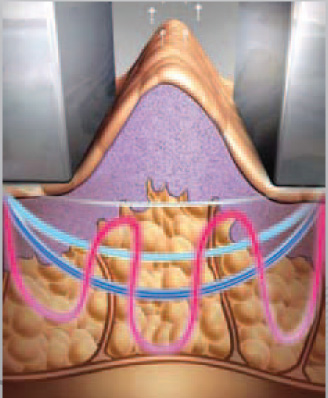 L’énergie concentrée de la radiofréquence émise par le Medical Cellu System® provoque un échauffement contrôlé et ciblé des tissus, induisant des changements physiologies en surface et en profondeur :